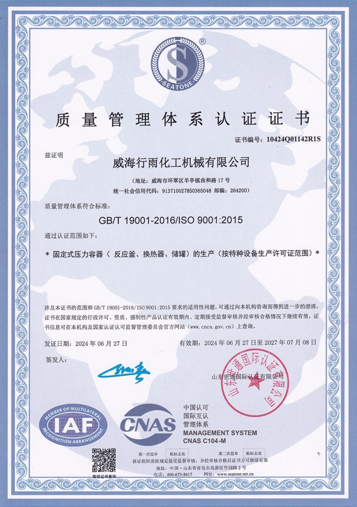質量管理體系認證證書